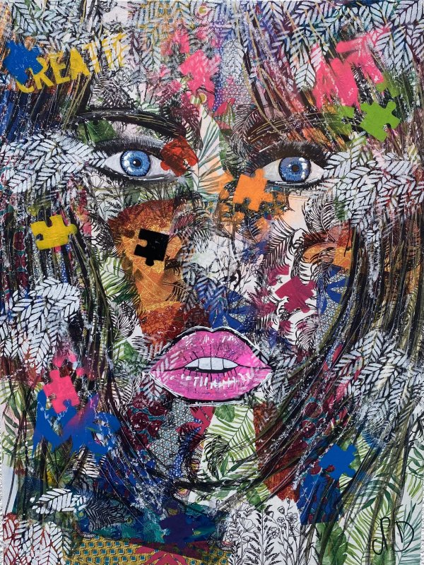 Technique : Acrylique sur toile, collage